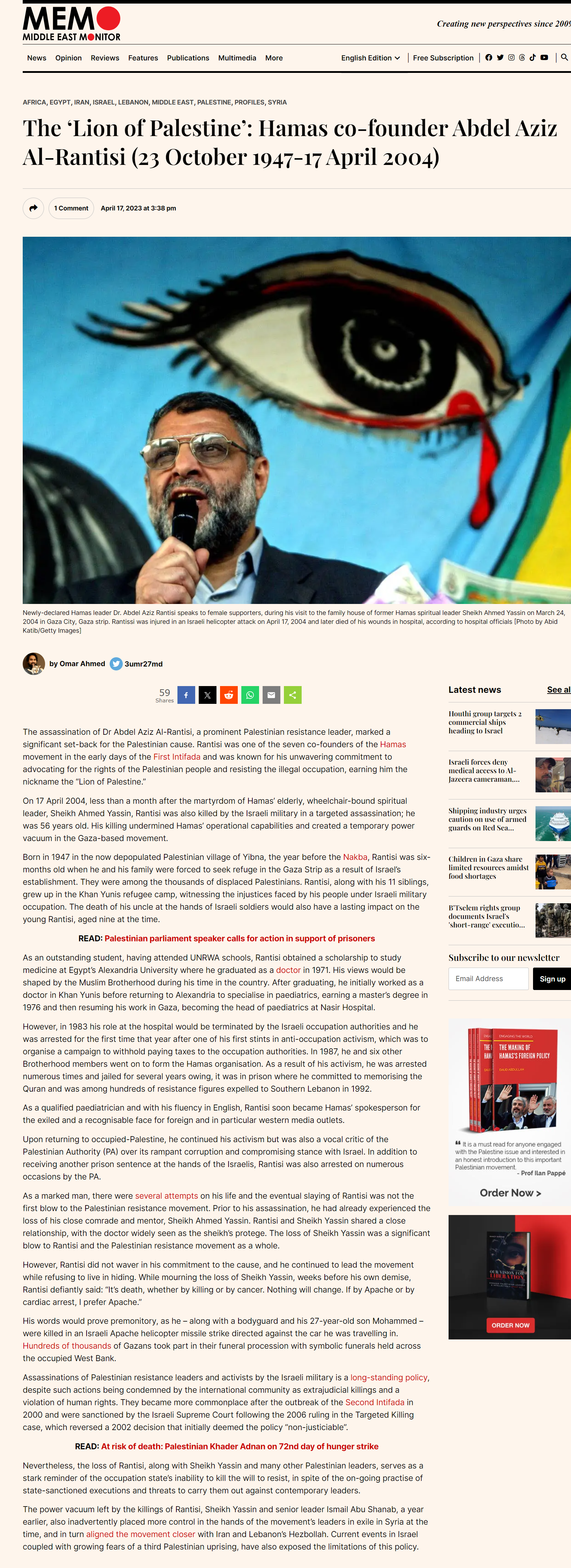Among these republished interviews will be my interviews with the co-founders of Hamas did these in 2003-2004 .... Israel assassinated them immediately afterwards
